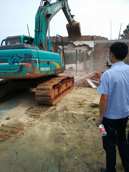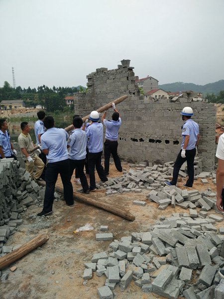 6-7,县规划局联合国土、林业、公安、卫生、铁山执法局、毛田镇等乡镇和部门组成约180人的执法队伍,对毛田镇育英村刘某、李某、许某等3户在铁山水库红线区域内抢建的违法建筑进行强制拆除。拆违现场调动挖掘机、风炮机各1台,通过人工拆违与机械设备互相配合的方式,共拆除违建房屋面积约307平方米。此次拆违行动部署周密,拆违过程文明执法,取得了良好的社会控建宣传效果。