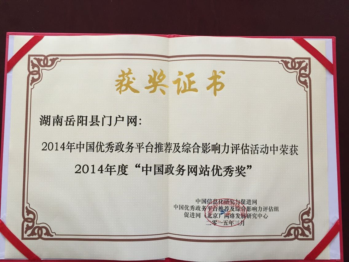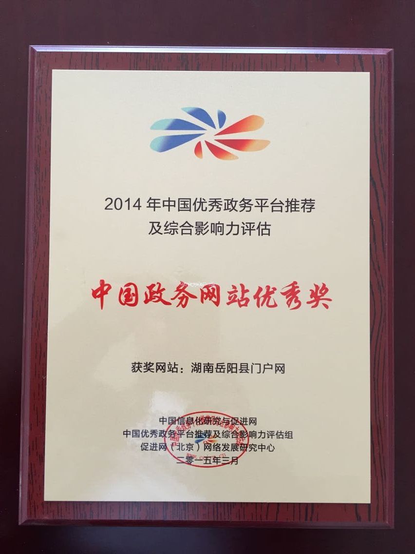 政务中心:我县政府门户网获2014年度中国优秀政务平台奖