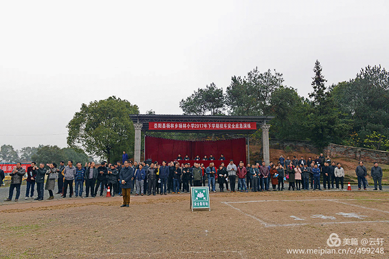 杨林小学始建于1963年,学校共有16个教学班,学生787名,教职工31名,该校被岳阳县教育局授予“县规范化学校”, 2017年全县教学质量检测第三名。为开展好本次校车安全事故应急演练,杨林小学做了大量的前期准备工作。演练现场,县教体局副局长梁贤定作了动员报告,交警大队副大队长余楚高进行了乘坐校车安全培训,消防大队现场灭火演练,人民医院120抢救伤员演练,师生乘坐校车规范动作演练,演练行云流水,一气呵成,忙而不乱,井井有条。巴陵摄影俱乐部的摄影师们积极参与现场拍摄活动,航拍、录像等设备齐上阵,留下很多精彩瞬间。