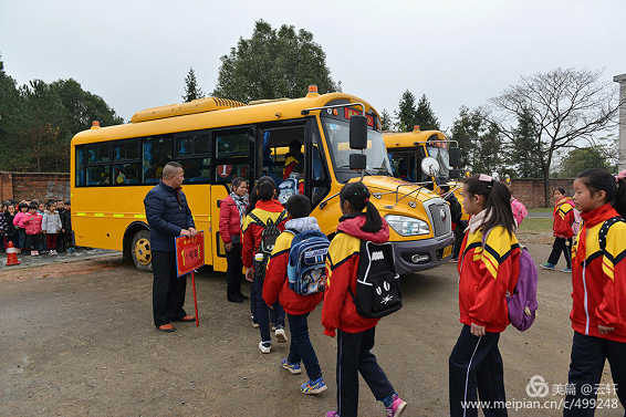 学生校车上就位