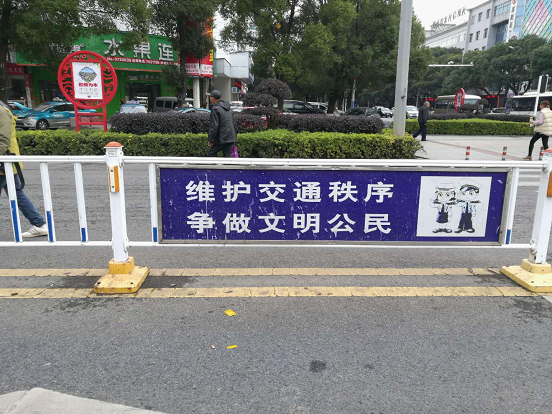 城区中心主干道中心护栏全长16公里,位置醒目,在交叉路口、人流密集、红绿灯处等部位悬挂固定宣传标语,时效长,效果好,以极小的投入能够收到最大的效果。该大队精心准备的突出“文明”“安全”的宣传标语,在中心护栏上固定560块整洁和规范的交通宣传牌。