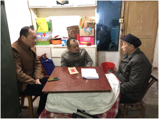 随后彭勇副局长与毛善宇同志拉起家常,通过交谈,了解到毛老身体旧疾严重,前阵子还在医院住院。爱人中风瘫痪多年,生活不能自理,下有一子三女,一个女儿早年过世,另一个女儿精神障碍,儿子在外地务工,老俩口仅仅依靠微薄的退休工资苦苦度日,生活极其困难。
