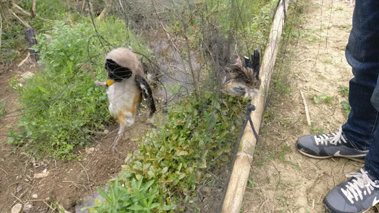 通过巡查,在农田中共发现3处鸟网,每只鸟网都上挂着鸟儿的尸体,令人痛心,工作人员立即将发现的鸟网一一拆毁。