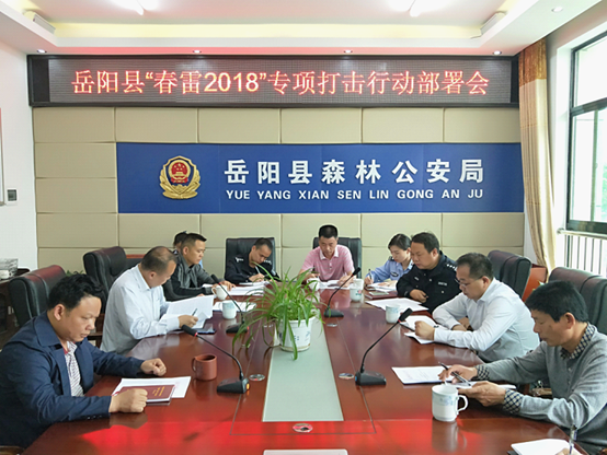 会上系统解读了《湖南省林业厅关于印发<湖南省林业厅“春雷2018”专项打击行动方案>的通知》和《岳阳县林业局关于印发<岳阳县林业局“春雷2018”专项打击行动方案>的通知》,成立了 “春雷2018”专项行动领导小组;明确了职责分工和目标任务,明确了排查范围、打击重点和工作进度。此次专项行动由县森林公安局牵头负总责,林地资源股、森保站、执法大队负责对违法占用林地、乱砍滥伐林木、乱捕滥猎野生动物、乱采乱挖野生植物等方面全面摸底排查,定期移交涉林刑事案件线索。
