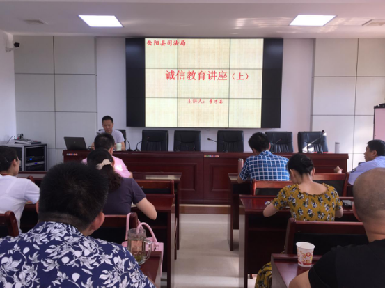 7月16日,岳阳县司法局开展诚信教育讲座,由老干书记李才易讲课。主要从诚信的一般理论、诚信的主要特点、诚信的价值功能、诚信的基本要求、中国古代诚信思想、中国共产党诚信建设的理论实践、构建中国社会诚信体系八个方面进行讲解。讲座内容丰富、观点新颖、让机关干部接受了一次很好的道德教育。大家纷纷表示深受启发,袁召舟局长总结到:“诚实守信既是中华民族的传统美德,也是建设现代化新型社会的基石。讲座弘扬了中国的优秀传统文化,寓意深刻,推动了机关的精神文明建设。”