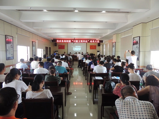 7月27日上午,县水务局召开创建省级文明单位动员大会,局机关全体干部职工、局直各单位负责人参加会议。会上总结了过去几年创建市级文明标兵单位所取得的成绩和经验,表彰了水务系统2017年度文明股室、文明单位、文明家庭和文明职工,同时对创建省级文明单位进行了部署和动员。