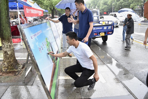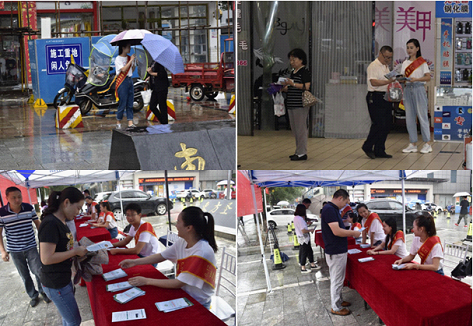 天公不作美,17日一早便淅沥沥地下起雨来。“防沙治沙本就是与天抗争,不能妥协”,绵绵细雨也没有阻挡林业人对防治荒漠化和沙化的执着,局领导当机立断,决定如期开展活动。在东方盛世白马服饰广场,30余名干部职工迅速忙活起来,男同志三两成组,拖的拖桌子、搭的搭棚子、搬的搬展板,建好了活动场地“硬件设施”;女同志负责“软件”,戴上宣传绶带、打着雨伞向过往行人、路边商户发放宣传手册,并为咨询的路人解惑释疑。虽头顶大雨,但活动场面仍是一片热火朝天,2个多小时共发放宣传手册450余份,咨询台接待行人150余人;有效提升了社会对防治荒漠化和土地沙化现象的关注度和认识度。