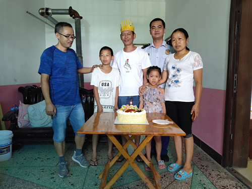 长湖乡自强村有杨丰谷、陈秋珍共两户为大队扶贫对象。两户中杨丰谷家老婆及小孩均患有癫痫,常年服药;陈秋珍则双目失明多年,早已丧失劳动能力,是扶贫对象中的“兜底户”。大队扶贫干部首先来到杨丰谷家,通过拉家常的方式,详细了对方当前家庭收支情况、生活中存在的困难及脱贫致富想法等问题。聊天过程中,大队扶贫干部得知杨丰谷恰逢生日,随即赶赴柏祥镇,自掏腰包购买了生日蛋糕为杨丰谷庆祝生日。切蛋糕时,为杨丰谷开心得接近哽咽:“谢谢你,这是我最幸福的一个生日!”随后大队扶贫干部看望慰问了陈秋珍一家,详细了解当前生活情况,并叮嘱陈奶奶天气炎热一定要多注意身体。