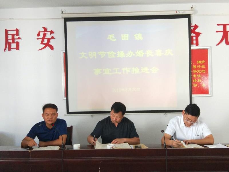 今年,毛田镇决心进一步统一思想认识,保持工作定力,将文明节俭操办婚丧喜庆事宜工作与乡村振兴、正风反腐等重点工作结合起来,持续深入抓下去,推进工作向纵深发展,抓出影响、抓出特色。因此毛田镇决定进一步开展“四大整治”行动:铺张浪费整治行动、封建迷信整治行动、丧事扰民整治行动、乱埋乱葬整治行动。 并且坚决落实“六提倡六反对”:提倡文明节俭操办婚丧事宜,反对大操大办、铺张浪费和燃放鞭炮,使用一次性塑料餐饮用具;提倡集体婚礼、旅行婚礼等文明健康的婚庆形式,反对炫富攀比、低俗闹洞房等陋习;提倡厚养薄葬、遗体火化、节地生态安葬,反地打卦占卜、做道场、游街抬轿封建迷信治丧行为;提倡到殡仪馆或规定场所办理丧事,采取播放哀乐、鞠躬默哀、敬献鲜花等悼念方式,反对占且街道、公路等公共场所搭设灵棚、高声奏乐、噪音扰民等行为;提倡公墓安葬、兴建农村公益性公墓,反对乱埋乱葬,修“活人墓”、豪华墓;提倡不办婚丧以外的其他事宜,如要办理,只能邀请亲戚简办,不收受亲戚以外人员的贺礼,反对滥办大办酒席,借机敛财。