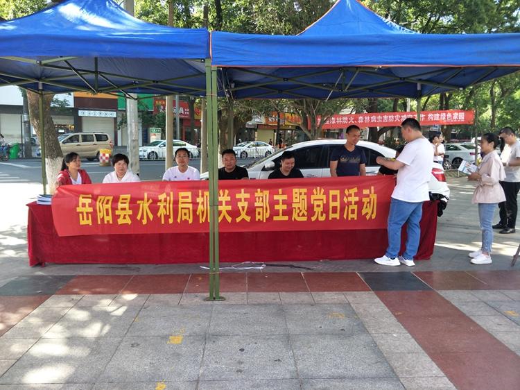 5月12日是全国防灾减灾日,岳阳县水旱灾害防御中心、岳阳县防汛抗旱指挥部办公室、岳阳县水利局党建办组织水利部门党员干部在富安商业广场前举行山洪灾害防御宣传活动。
