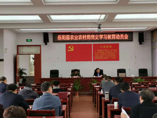 会议传达学习了习近平总书记在党史学习教育动员大会上的重要讲话精神及省委、市委、县委党史学习教育相关文件精神,宣读了中共岳阳县农业农村局党组《关于印发开展党史学习教育的实施方案》。