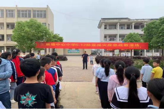 (麻塘办事处举办校园防震减灾应急疏散演练)