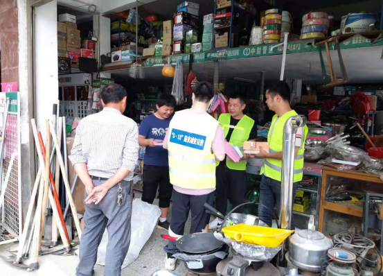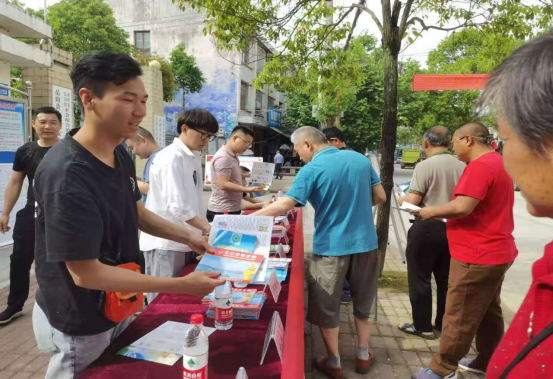(岳阳县减灾委员会组织荣家湾镇、市生态环境局岳阳县分局、县民政局、县市场监管局、县商务粮食局、住建局、农业局、林业局等单位,在向红社区开展主题宣传活动)