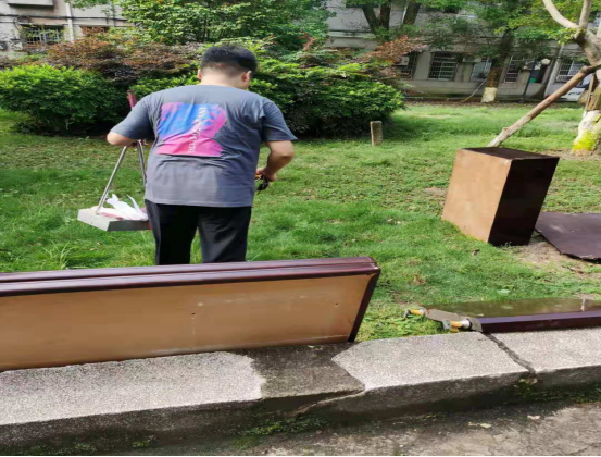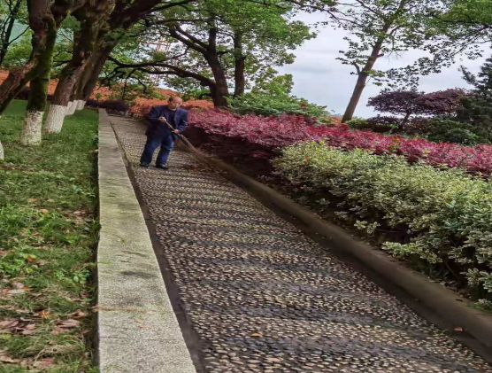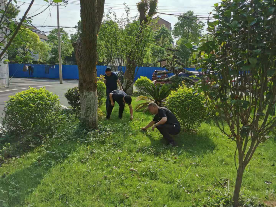 (局属二级机构农机服务中心干职花丛树下杂物拾捡)