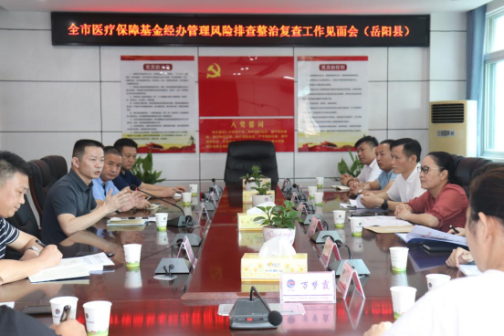 7月20日上午,市局检查组一行8人由市医疗保障事务中心副主任赖优良带队,来我县开展医保基金经办管理风险排查整治复查工作。检查组一行首先听取了我县医保基金经办管理风险排查的情况汇报,随后对各相关业务股室进行了现场查阅资料。赖优良主任对我县自开展此项工作以来所做的前期工作给予了充分肯定,并要求对自查自纠所发现的问题要做到立即整改,防范于未然,确保医保基金安全、合理运行。县医疗保障局中层以上骨干均参与会议。据悉此次检查目的是为全面加强医疗保障基金监管,防范和化解全市医疗保障经办管理风险启动的一次全市性检查,检查将遵循依法依规、实事求是、客观公正、程序严谨、交叉检查的原则,为期10天,在岳阳县预计两天。(县医疗保障局办公室邹颖)