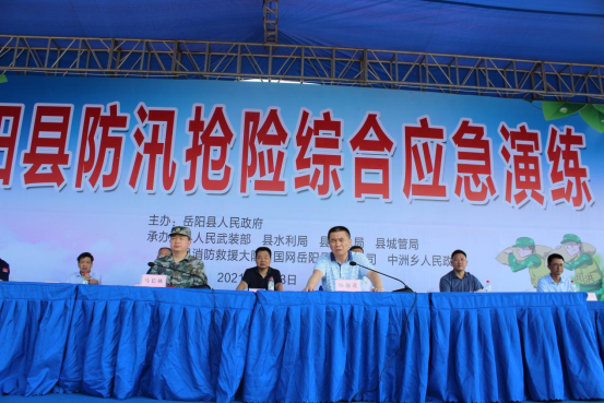 7月23日上午,岳阳县在中洲垸举办防汛抢险综合应急演练,演练以模拟抢护管涌、搜救落水群众为主要内容。此次演练由岳阳县人民政府主办,岳阳县人民武装部以及县水利、应急、城管、消防救援大队、供电公司、中洲乡政府、中洲乡派出所等单位协办。岳阳县委常委、县人武部政委马长林,岳阳县人民政府副县长杨前进,以及各协办单位负责人出席活动。县人武部民兵应急连、县应急救援队、县消防救援大队、县水务局、国网岳阳县供电公司、中洲乡政府、中洲派出所等单位共129人参加演练。