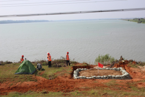 由于管涌险情较为严重,现场采用了反滤围井法处险。经过抢险队员的拼搏努力,管涌险情得到基本控制,成功化解了一起重大险情。为进一步加强对险情的观测,抢险队员在井口插上红旗,在管涌处搭设防守棚,安排专人进行监测值守。