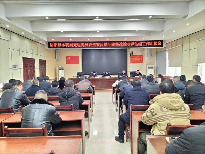 岳阳县水利局2月7日讯(通讯员 )2月7日,县水利局召开向县委巡察反馈问题整改验收评估组工作汇报会。县委巡察整改验收评估小组许玉石等人,县水利局全体班子成员、股室长和二级机构负责人参加会议。