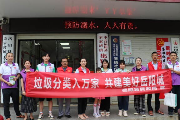 7月14日,岳阳县民政局联合基层社工站、岳阳市生态环境局岳阳县分局、岳阳县荣家湾镇集镇社区,在岳阳县荣家湾镇集镇社区开展“垃圾分类入万家,共建美好岳阳城”垃圾分类志愿服务活动。