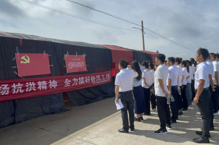 6月30日上午,中洲乡洞庭湖大堤上举行了一次特殊的入党转正和宣誓仪式。他们面对庄严的党旗,举起右手,用铮铮的誓言、坚定的承诺,表达了打赢这场防汛抢险硬仗的必胜决心。