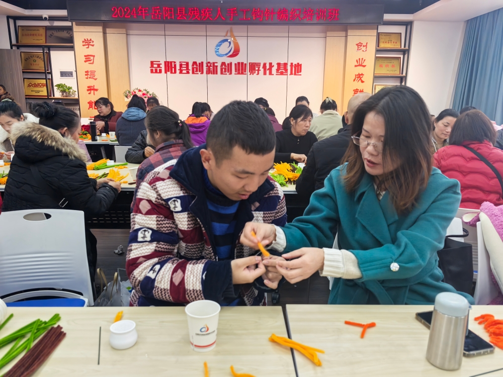 一技在身,胜过万金。为帮助残疾人家庭开辟新的就业路径,近日,岳阳县残联携手岳阳宏博职业培训学校举办了“匠心编织梦想,钩针技艺引领就业”技能培训班。培训班为期三天,来自全县各乡镇的60余名残疾人或其家庭成员参加培训。