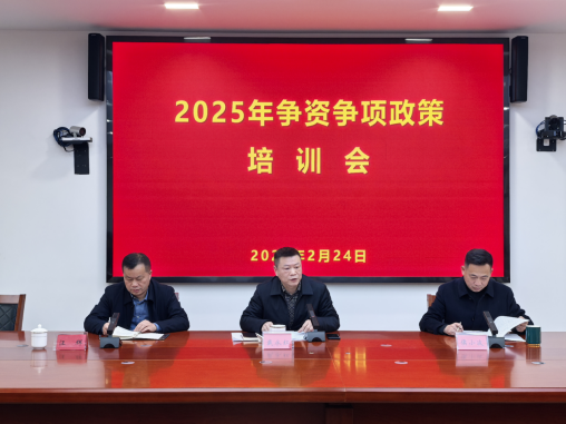 2月24日下午,我县召开了2025年争资争项政策培训会,县政府办、县发改局、县财政局、争资争项单位相关负责人及业务股室负责人参加。