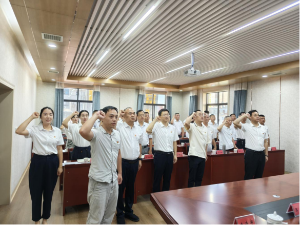 大会在庄严的国歌声中拉开帷幕。会上,预备党员朱娜宣誓, 全体党员重温《入党誓词》,由陆云龙同志领读,铿锵有力的誓言回荡在会场,不仅是对入党初心的深情回望,更彰显了全体党员为党和人民事业奋斗终身的坚定决心。