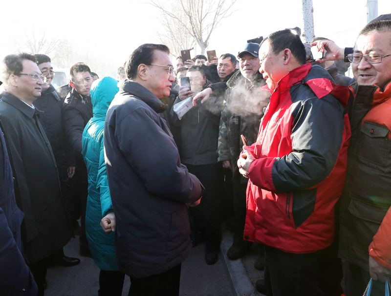 在长途汽车站,李克强与返乡探亲的外出务工人员交谈,询问工资是否足额拿到。听到大家肯定的答复,李克强高兴地说,要继续做好这项工作,坚决把恶意欠薪的黑心者打入黑名单。考察途中,李克强停车看望路边工作的环卫工人,感谢他们为大家带来干干净净的新春。