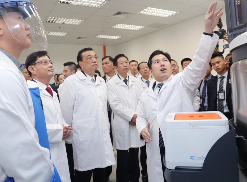 当地时间11月13日下午,国务院总理李克强在新加坡参观特沙生物医疗科技公司。新加坡财政部长王瑞杰陪同参观。