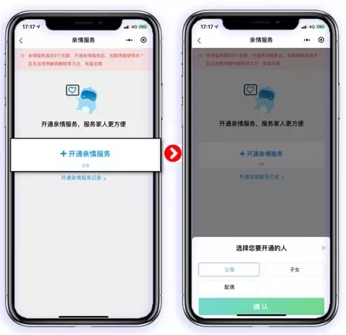 (注:亲情服务的扫码支付,依据各地需求逐步开通)