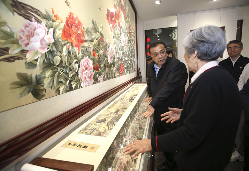 【李克强鼓励82岁“绣娘”:让优秀传统文化代代相传】李克强8日晚来到开封七盛角民俗文化街,在王素花汴绣馆长时间驻足。82岁的王素花多年继承创新宋代传统刺绣工艺,是汴绣领军人物。总理仔细观赏后称赞她用色“多而不杂”,技艺“炉火纯青”。他鼓励老艺人弘扬工匠精神,让优秀传统文化代代相传。