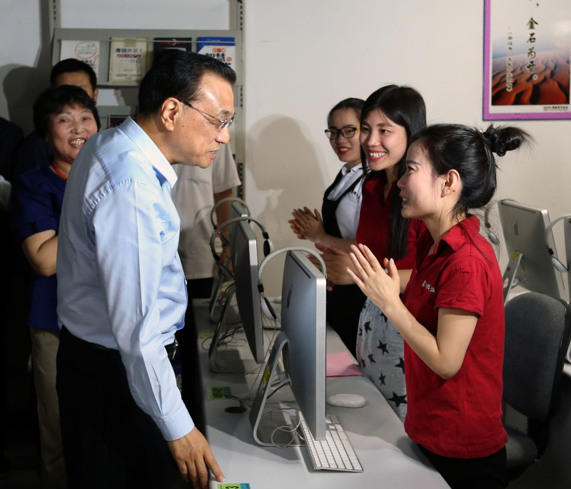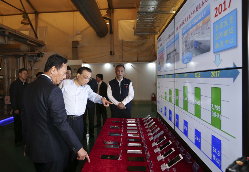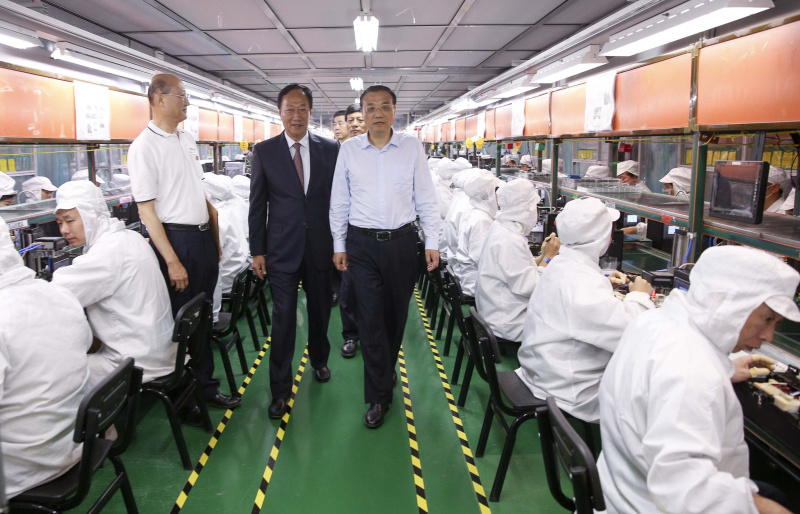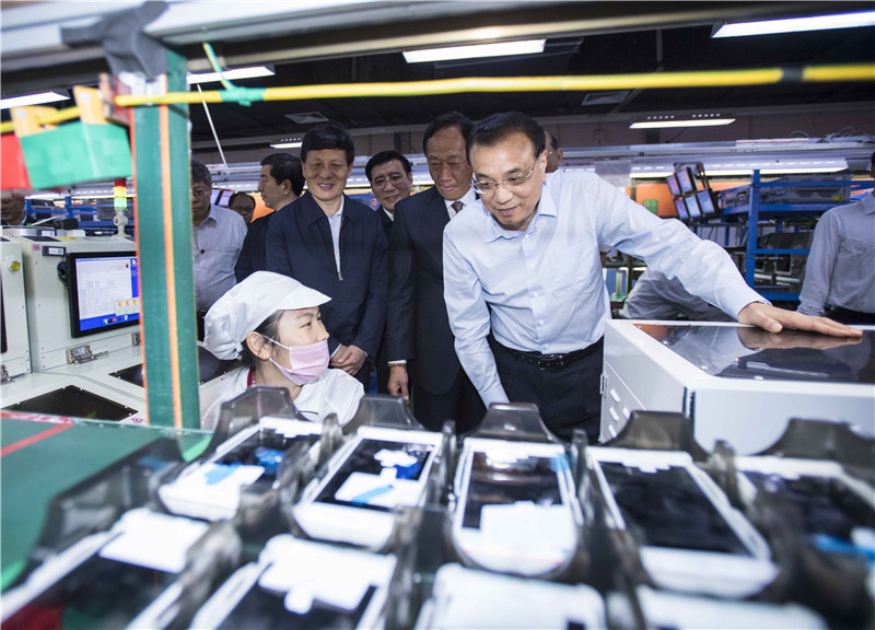 【李克强勉励富士康员工珍视两种精神】李克强9日考察郑州富士康科技园,先来到富士康全球首个智能生产无人车间,随后走进2000多人的精密组装测试车间。总理关切询问工人收入和防护等情况。他最后寄语这里的员工,投身先进制造业尤其要珍视两种精神:一是精益求精的工匠精神,二是永不止步的创客精神。