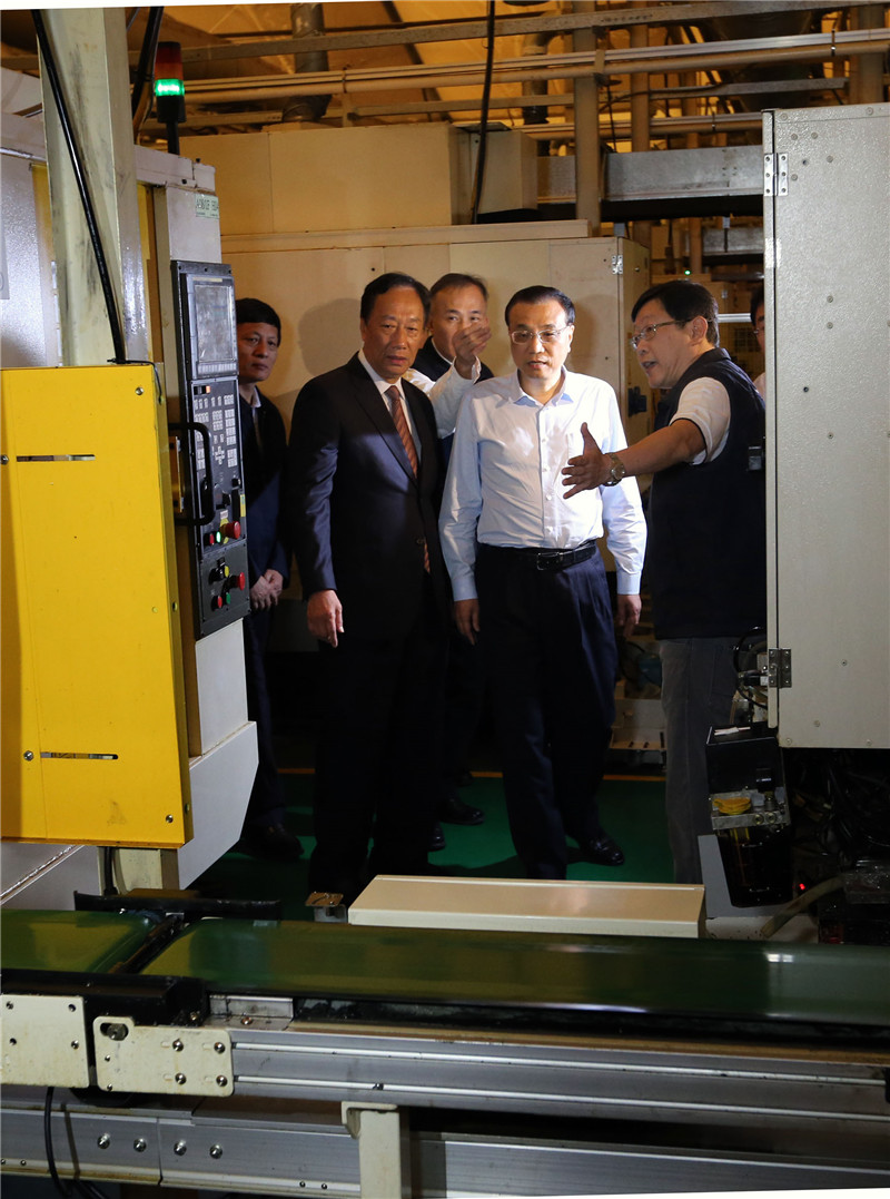 【李克强与郭台铭两次驻足谈了啥】李克强9日考察郑州富士康科技园,郭台铭董事长亲自介绍。在厂房前两人驻足交谈5分钟,临上车前再次驻足交流。总理说,希望富士康把更多高端研发和全产业链放在这里。我们会进一步扩大开放、优化营商环境。中国有巨大的市场和人才资源,是发展制造业的最佳投资目的地。