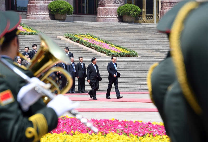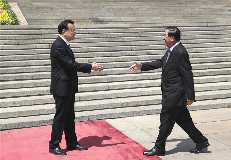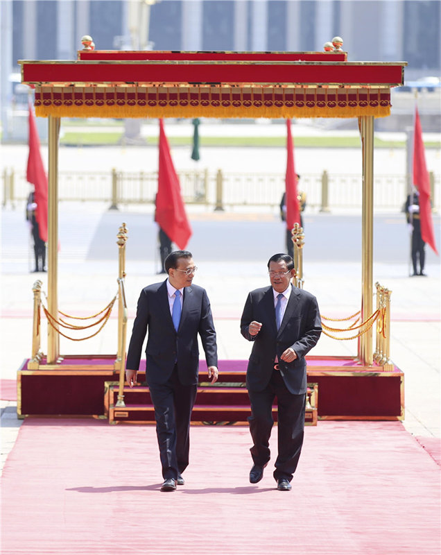 李克强表示,中柬友谊是两国老一代领导人共同缔造并精心培育的,历久弥坚。习近平主席去年对柬进行国事访问,在新的国际政治经济形势下发扬光大了中柬友好。中方愿同柬方保持高层交往和战略沟通,深化务实合作,密切人文交流,就国际和地区事务加强协调,更好造福两国和本地区各国人民。