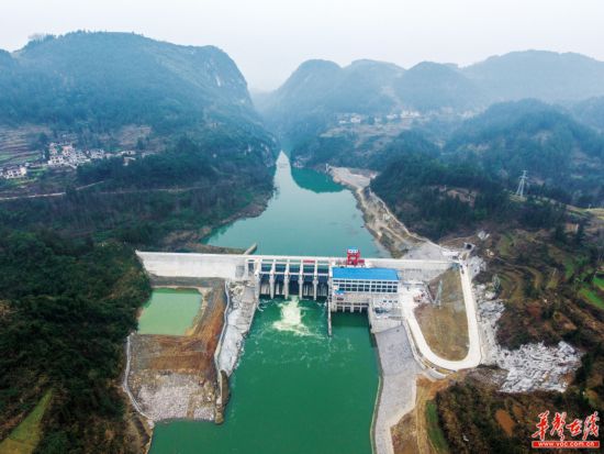 1月8日,俯拍龙山县落水洞电站。近日,该水电站设备已安装完成,正在进行发电前的准备工作。落水洞水电站位于酉水河中游,总装机35MW,工程总投资为33381.32万元。建成发电后可缓解湖南、湖北两省交界乡镇用电紧张的局面。 曾祥辉 摄