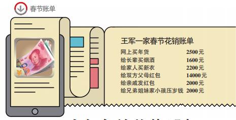 “年终发了2.3万元年终奖,还不够春节的花销。”王军介绍,新年账单主要都是围绕家庭。年货都是妻子提前在网上购买寄回老家,一共花费了近2500元。此外还给长辈们购买了酒和香烟一共花了1600元。