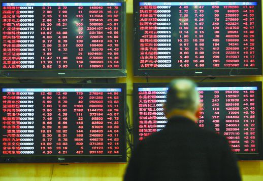 2月25日,方正证券长沙留芳岭证券营业部,股民在观看股市行情,行情显示屏上“一片红”。 湖南日报记者 李健 摄