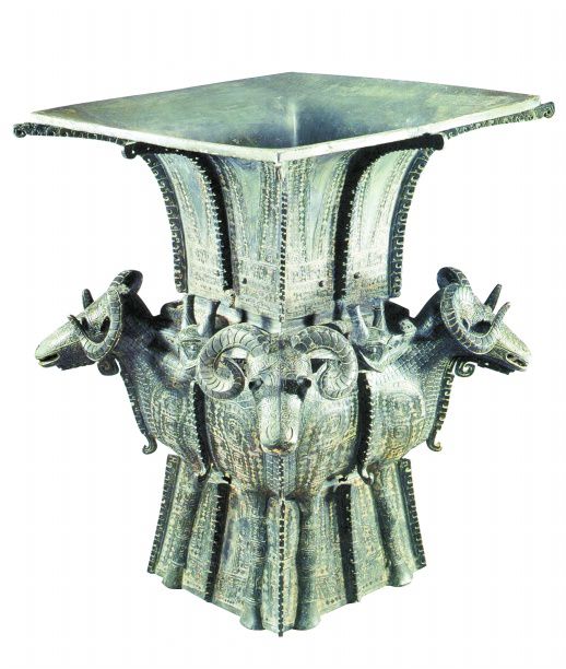 1938年4月,四羊方尊在宁乡黄材镇龙泉村出土。之后,几经转手,颠沛流离,并在抗战时期被日军的炸弹震碎成20多片。新中国成立后,经文物专家修复,落户中国国家博物馆,成为镇馆之宝。湖南众多吸收中原风格铸造的作品中,有不少令人叹为观止的杰作,四羊方尊无疑是其中的翘楚。这件器物也被认为是传统陶范法铸造的巅峰之作,是青铜文化代表。