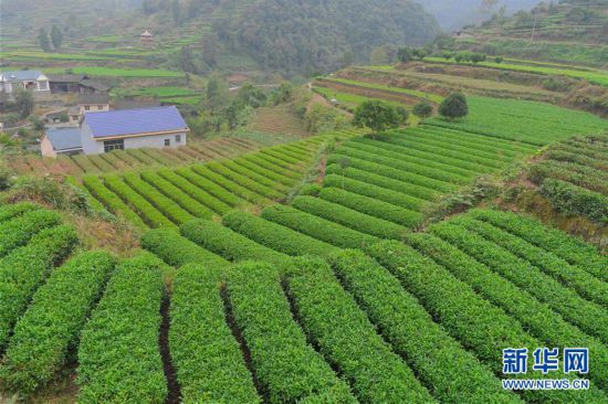 这是湖南湘西吉首市马颈坳镇隘口村的一片茶田(2018年10月18日摄)。新华社发(陈泽国 摄)