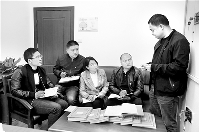 图为湖南省湘潭县纪委监委办案人员讨论涉“伞”涉黑案件案情。(资料图片)
