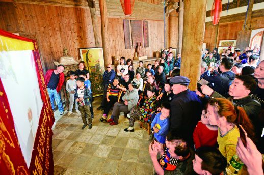 5月1日,长沙市望城区郭亮路,游客在古色古韵的夏国安艺术博物馆欣赏皮影戏。该馆展品为益阳籍收藏家夏国安的毕生所藏,占地约10亩,分别涵盖了明清古民居、湖湘木雕、古床、刺绣等。当天,该馆部分馆区免费对外试开放。 (记者 李健 摄)