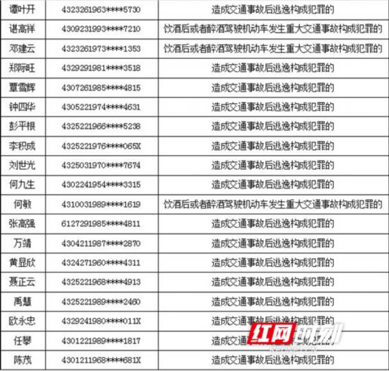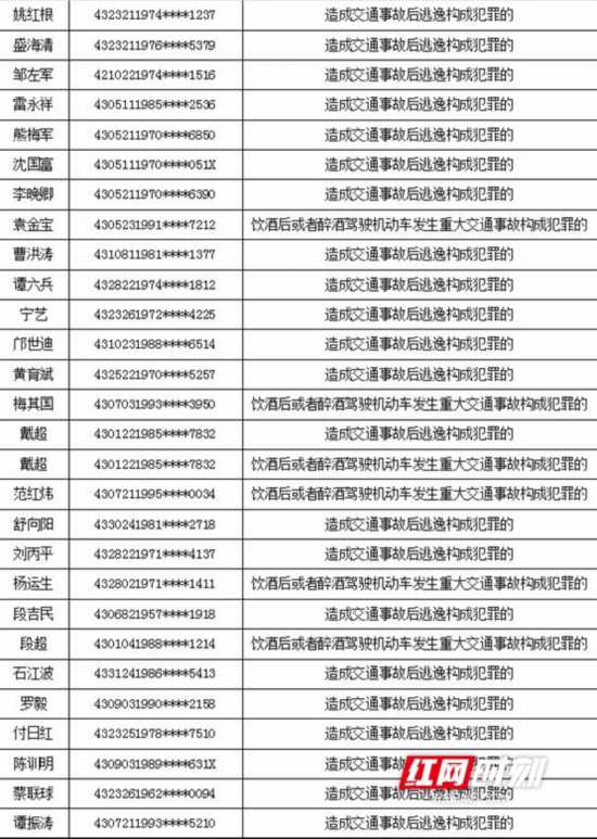 5月20日,湖南省公安厅交警总队联合各市州公安局交警支队,曝光2019年1-4月份以来157人终生禁驾人员名单,并列入黑名单实施动态监管。一旦发现其中有人再次申领机动车驾驶证,系统将会自动锁定不予办理相关业务。