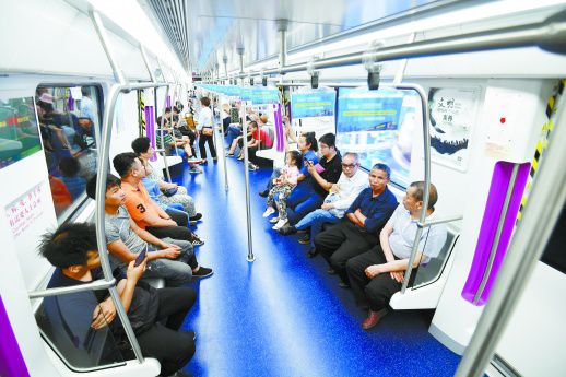 5月26日中午,市民乘坐长沙地铁4号线列车出行。当天,长沙地铁4号线一期工程正式载客试运营。(记者 田超 摄)