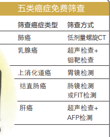 五类癌症可免费筛查