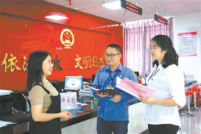 今年以来,湖南省保靖县纪委监委在全县开展清理责任书(状)事项专项行动。图为近日,该县纪检监察干部在县政务服务大厅向工作人员了解相关情况。龙术娥 摄