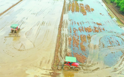7月19日,常宁市柏坊镇新柏村,村民驾驶农机在田间翻耕。洪水退去,当地农业农村部门组织村民迅速开展改种补损,按照“田里损失地里补、夏粮损失秋粮补”的要求,指导农户抢抓农时,抢播抢种开展生产自救。常华 曹正平 摄影报道