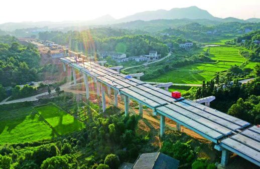长益高速扩容工程首座钢板组合桥梁半幅架通