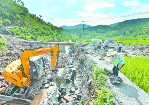 8月2日,泸溪县武溪镇红岩村,村民冒着酷暑加固河堤。该村曾是深度贫困村,近年来,在当地政府和省民政厅驻村帮扶下,陆续完善了基础设施建设,村容村貌得到了明显改善。湖南日报记者 李健 通讯员 姚俊锋 摄影报道