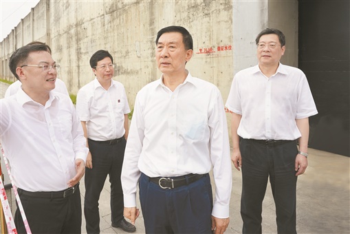 7月16日下午,国务委员、国家防总总指挥王勇在长沙县 梨城市防洪及水环境综合治理工程现场,检查工程建设和城市防洪情况。记者 罗新国 摄