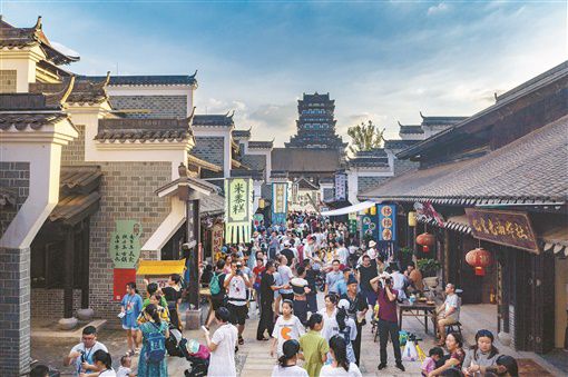 8月1日,游客在铜官草市内游玩。当日,位于长沙市望城区铜官窑古镇内的铜官草市正式开街运营。铜官草市对游客免费开放,所有的门店商铺不收租金,出租方采用提成的方式来获得收益,带动了周边村民、返乡青年和非遗匠人就业。 记者 唐俊 通讯员 王畅 摄影报道